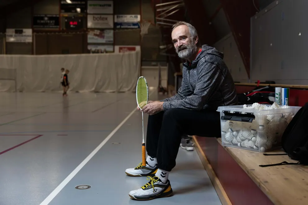 Den 65-årige formand for Jernløse Badmintonklub folder hænderne ind foran brystet på den mørkeblå Yonex-trøje og kigger eftertænksomt gennem de blå briller. Hans strømpeklædte fødder er stukket ned i et par badetøfler, og hans krop bærer præg af et langt liv i sportens verden. Han bevæger sig let og ubesværet.